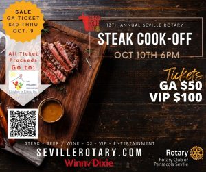 Join us for the 13th Annual Seville Rotary Steak Cook-Off in historic downtown Pensacola and support our Children’s Neighborhood! Grab your $40 General Admission ticket today and help us further our mission!
